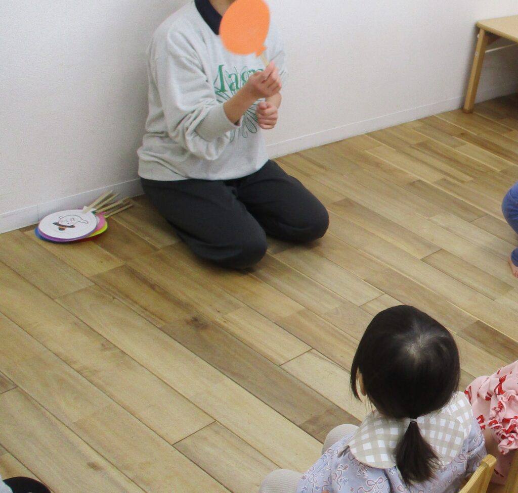 先生からの出し物のプレゼントは【ふうせんのうた】のペープサートでした🎈