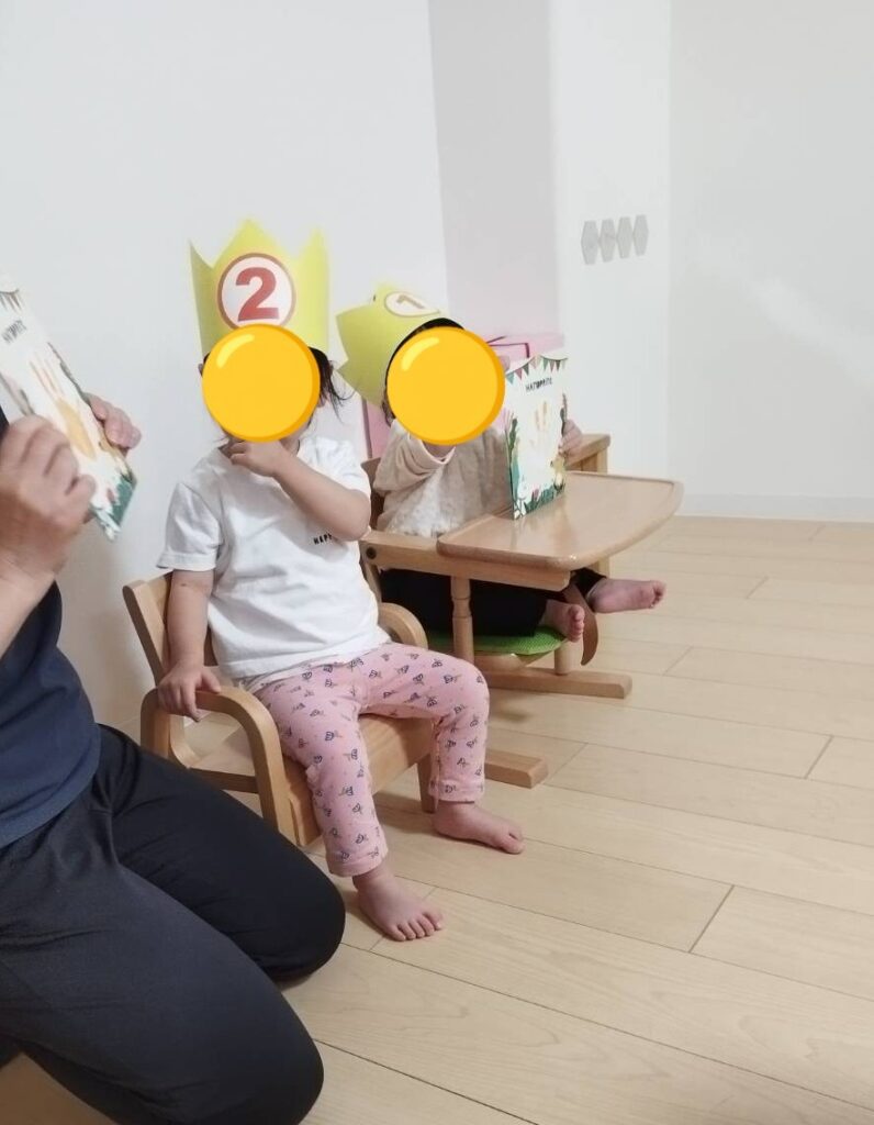 10月生まれのお友達は、お誕生日カードに「ちょうだい!」と手を伸ばしたり、ケーキのろうそくをふりふりしていましたよ。