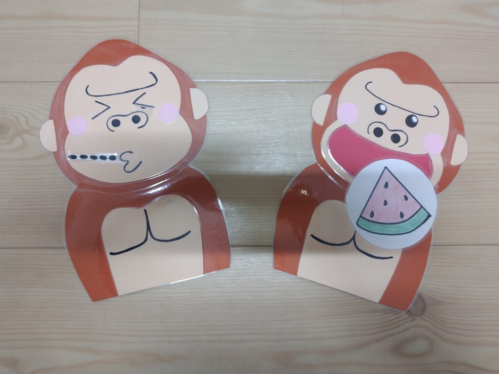 保育士からの出し物は『食いしん坊のゴリラ』のペープサートでした。