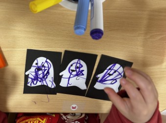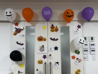 その後、園に戻ると……ドアの前にはかぼちゃやおばけが!